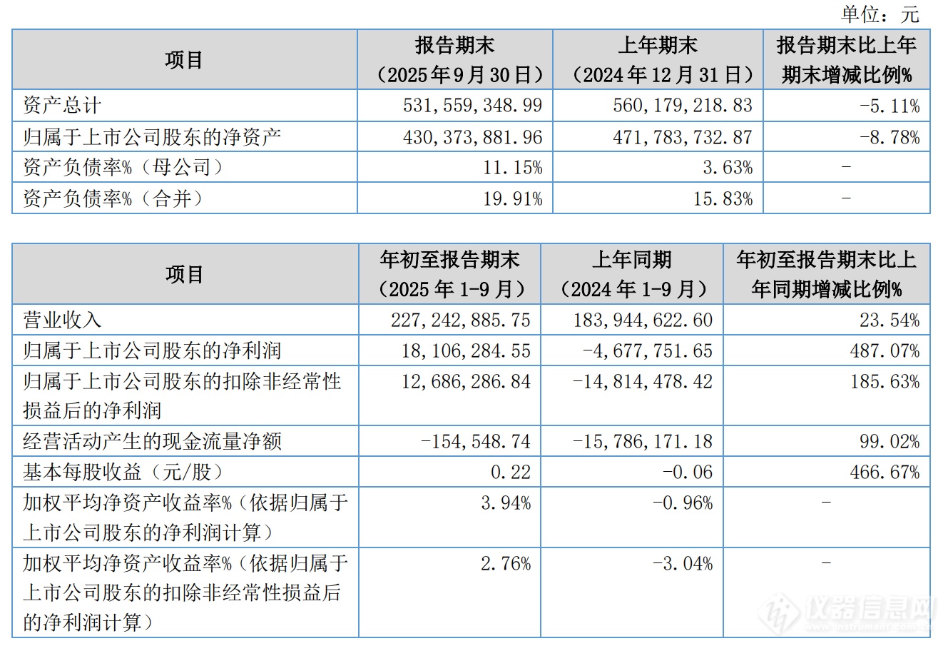 年初至报告期末营业收入2.27亿元,同比增长23.54%,归属于上市公司股东的净利润1810.63万元,同比扭亏为盈,归属于上市公司股东的扣除非经常性损益后的净利润1268.63万元,同比扭亏为盈,经营活动产生的现金流量净额-15.45万元。
