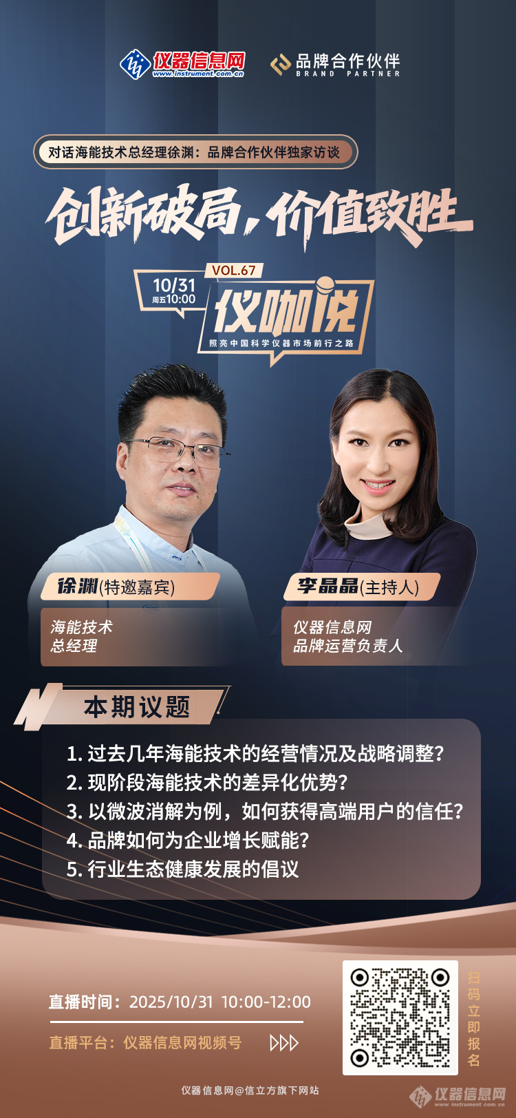 想深入了解海能技术的战略布局?敬请于10月31日(周五)下午锁定仪器信息网视频号,收看《仪咖说》“创新破局,价值致胜”专题直播,总经理徐渊将为您亲自解读。