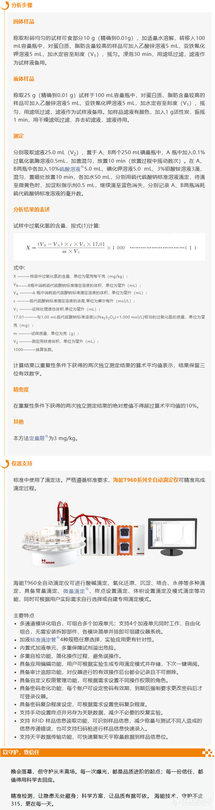 面对这一乱象,国家早已建立起严格的食品安全标准体系。依据GB 5009.226-2016《食品安全国家标准 食品中过氧化氢残留量的测定》,第一法 碘量法: